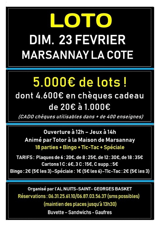 Prochain loto du club 23 février à Marsannay